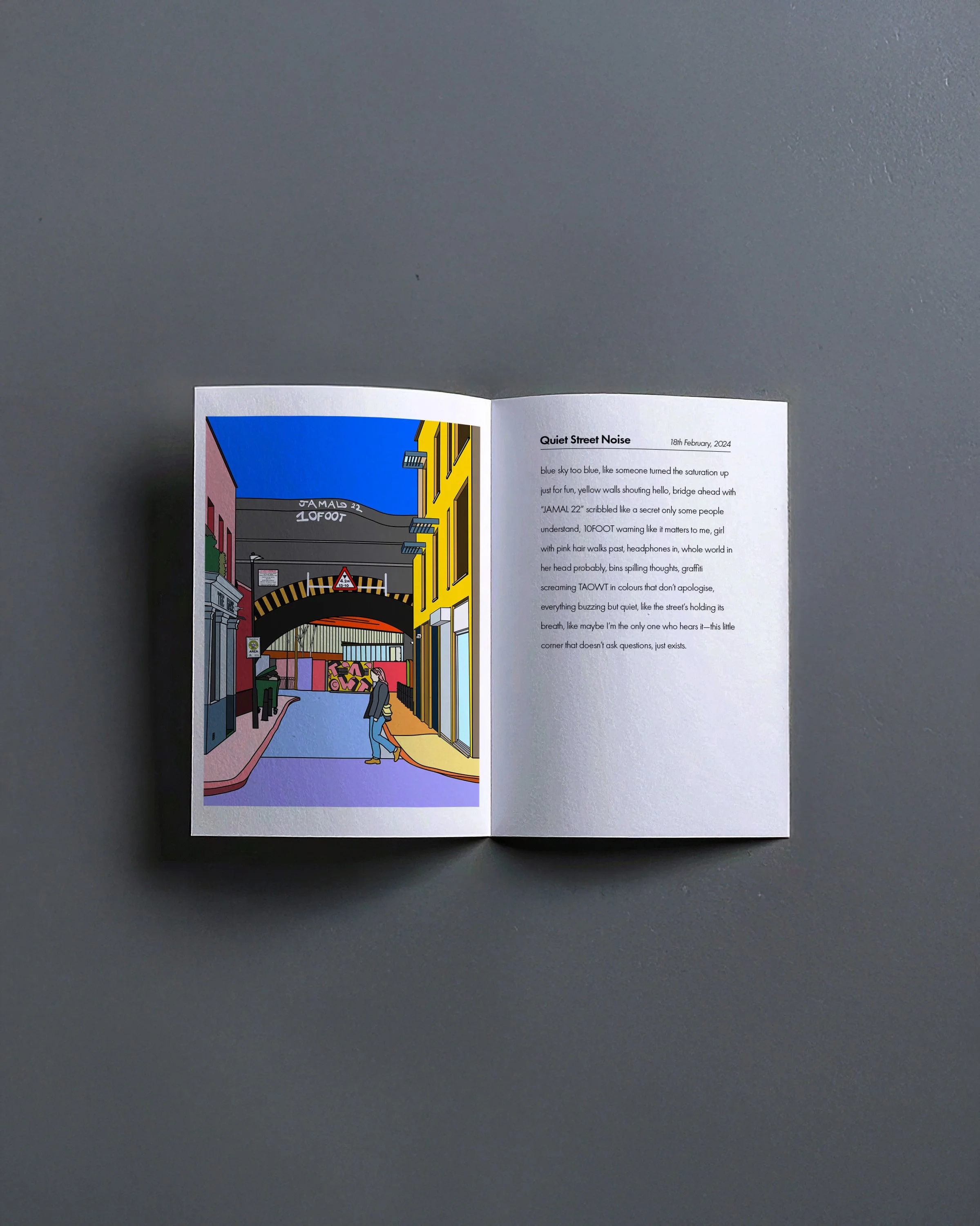 Small illustrated moments — quiet streets, fleeting thoughts, and imagined corners that hold more than they show.